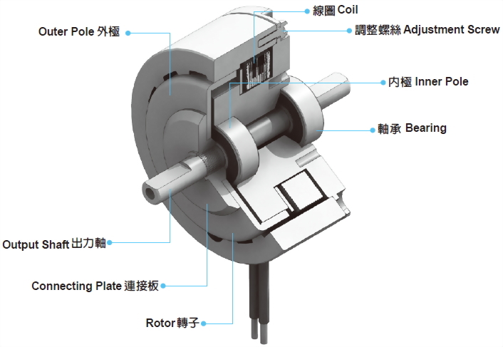 - 可高速迴轉:扭力是由非接觸型的構造產生,可容許高速迴轉。